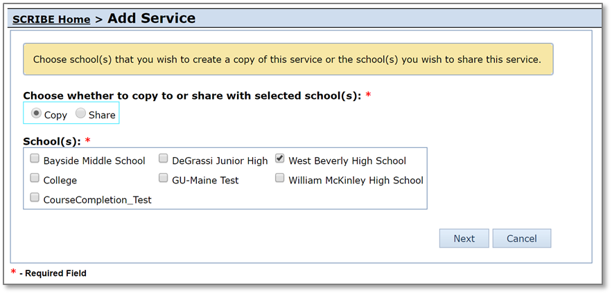 7. Add details to the Service Type (for example, add the IPEDS number for the college visited when creating a college visit service). If there is no additional info to add, click Next.