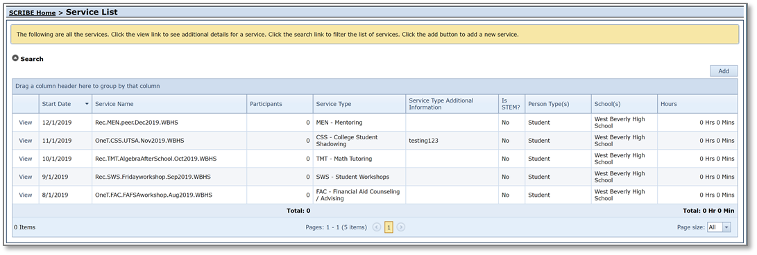 Note: The Student Group must be created and have student members before the group can be used when adding Service Participation. See How to Create A Student Group.