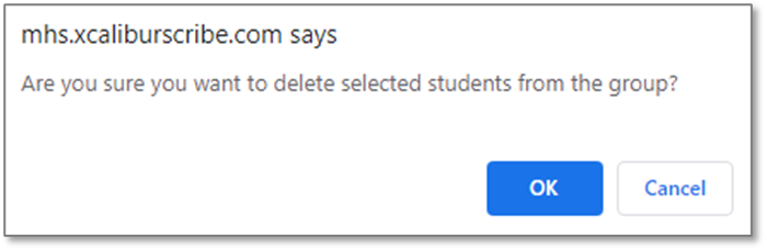 6. A pop-up box will appear asking if you are sure you want to delete the students. Click OK to delete the students from the group. Click Cancel to return to the group membership tab.