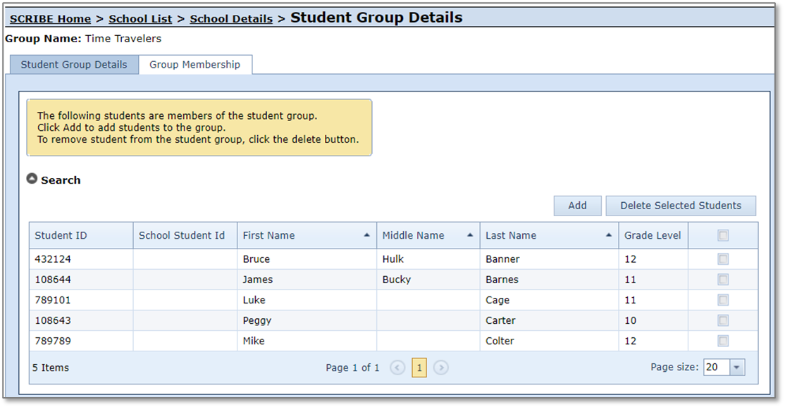 Before group members can be added, however, you must create the group in SCRIBE. See How to Create a Student Group Manually. You can add students to a group via import and manually. This tutorial covers how to add students to a group manually and how to remove students from a group manually.